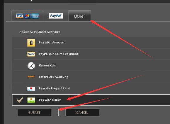 上面这里选Other其他,然后选择雷蛇钱包,就是 Razer pay,就会跳转,输入之前注册的雷蛇账户。